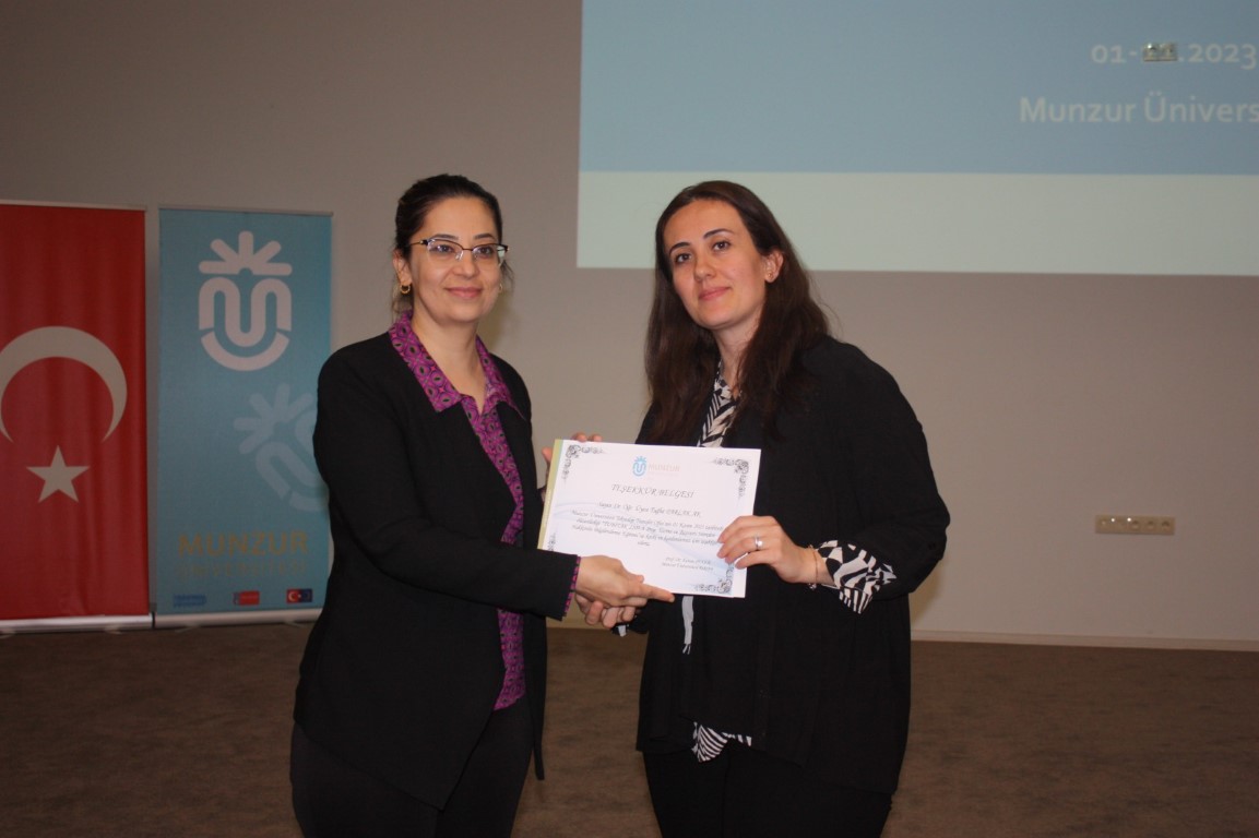 Eğitim kapsamında Munzur Üniversitesi Sağlık Bilimleri Fakültesi Beslenme ve Diyetetik Bölümü öğretim üyelerinden Dr. Öğr. Üyesi Tuba Parlak Ak öğrencilerimiz ile buluştu. Üniversitemiz Kongre Kültür Merkezinde gerçekleştirilen etkinliğe Rektör Yardımcımız Prof. Dr. Nuran Cıkcıkoğlu Yıldırım, akademik personeller ve öğrencilerimiz katılım sağladı. Eğitimde Dr. Öğr. Üyesi Tuba Parlak Ak yaptığı sunumda 2209 proje hazırlama süreci, proje yazım süreci, bilimsel araştırma ve hipotez, özgün değer, amaç ve hedefler, yöntem, yönetim ve yaygın etki, bütçe ve gerekçesi, özet ve anahtar kelimeler, projelerde yapılan hatalar ve değerlendirme süreçlerine ilişkin bilgileri aktarırken TÜBİTAK projelerinin kabulünde önemli etkileri olan kriterlere de yer verdi. Program Rektör Yardımcımız Prof. Dr. Nuran Cıkcıkoğlu Yıldırım’ın Dr. Öğr. Üyesi Tuba Parlak Ak’a teşekkür belgesi vermesi ile son buldu.