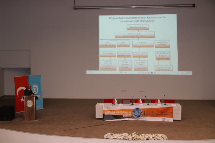 Rektörümüz Prof. Dr. Kenan PEKER konuşmasında devamla şunları ifade etti: “Bölgenin ülke ve uluslararası ölçekte ihtiyaçları karşılaması ve kalkınması için, yerel dinamikleriyle ihtisaslaşacağı önceliklerinin belirlenmesi gerekmektedir. Munzur Üniversitesi, 2023’te yani Cumhuriyetin 100. Yılında ihtisaslaşmada kaynak olarak hatta stratejik hammaddeler olarak; bölgenin toprak, su, bitki, tıbbi aromatik baharat, hayvan, hava, ateş, insan elementlerini ele almış ve Türkiye Yüzyılı için hiç kimsenin aç kalmadığı bir Dünya’nın inşasında Biyo sektörler, biyo endüstriler, biyo ekonomi ve Sıfır Atık Döngüsel Ekonomi hedefine yönelik programlar belirlemiştir. Tunceli ilinin havası, suyu ve güneşi gibi zengin enerji kaynakları, zengin bitki çeşitliliği, yaban hayvanları, nadir toprak elementleri, tıbbi aromatik baharat bitkileri, ve benzerlerinden oluşan hammaddelerin işlenmesine yönelik ileri teknoloji uygulamaları gibi biyo endüstriler ve katma değeri yüksek ürünlere dönüştürülmesi ile ortaya çıkan ürün sepetinden oluşan biyo ekonomiler hedeflenmiştir. Dolayısıyla ihtisaslaşma için bir tarafta kaynaklar, diğer tarafta ise ihtiyaçlar esas alınmış ve neler yapılacağı üzerinde durulmuş, yer bilimleri, saflaştırma, zenginleştirme, malzeme üretme gibi uygulamalarla somut ürünler ile ileri teknolojilerinin üretilmesi amaçlanmıştır. Geçmişte ağırlıklı olarak insanların zorunlu ihtiyaçlarının karşılanmasına yönelik girişimcilik ve yenilikçilik söz konusu iken günümüzde sosyo- kültürel ihtiyaçların karşılanması ön plana çıkmakta ve bunun karşılanmasında Tunceli ili özellikle de Alevi Kültürü büyük bir potansiyel oluşturmaktadır. Önemli olan kültürün aktarılması, geliştirilmesine liderlik edilmesi ve toplumun her alanda kalkınmasına katkı sunulmasıdır. Kültür, kültürel çeşitlilik ve bilgi aşamalarında elde edilecek çıktılar ile bilim, teknoloji, yenilik ve kalkınma sürecine uluslararası düzeyde büyük hızlandıran ve çarpan veya çoğaltan etkiler öngörülmektedir. Bilgiye dayalı kalkınma ekonomisi şeklindeki müteşebbislerin oluşması için yöresel kültür, kültürel çeşitlilik ve bilgi sürecinin yönetilmesi önem arz etmektedir. Günümüzde ihtiyaçlar kısmında “kendini tamamlama” ve “kendini aşma” şeklindeki ihtiyaç algısı artarken karşılanması yönündeki uluslararası girişimcilik, tekno girişim, eko girişim, yenilikçi girişimcilik dikkate alınarak bölgesel ölçekte “sürdürülebilir yenilikçi girişimcilik ekosistemi” oluşturulması için; kültür, kültürel çeşitlilik, bilgi, bilim, teknoloji, yenilik ve kalkınma şeklindeki sürecin sıfır atık döngüsel yaklaşımla her alanda yönetilmesi gerekmektedir. Munzur Üniversitesi’nin bu Çalıştayın çıktılarının Toplumsal Kalkınma için yaygın etkisi için yayım (Outreach) faaliyetleriyle toplumda farkındalık, algı, kavrama, analiz aşamalarında ciddi çalışmalar yürütülerek katılım ve kapsayıcılığın sağlandığı yöneylem aşamasından sonra bölgesel kalkınmanın yapısal safhaları olan “Mitigasyon”, “Adaptasyon”, “Resilience” ve “Teknoloji”nin tüm paydaşlar işbirliğinde devam ettirilmesi planlanmaktadır’’.