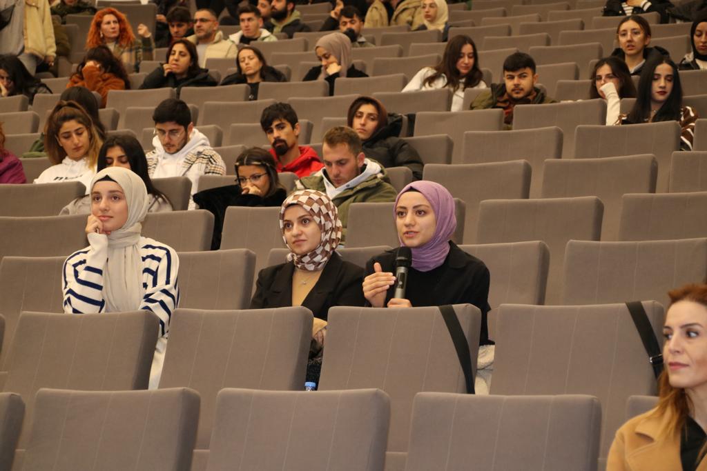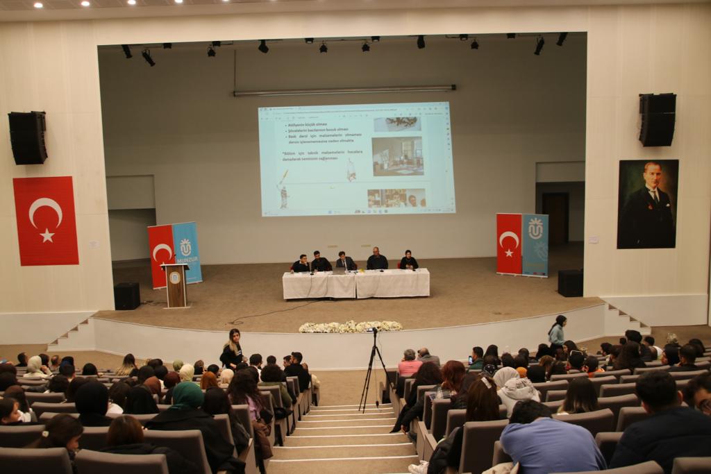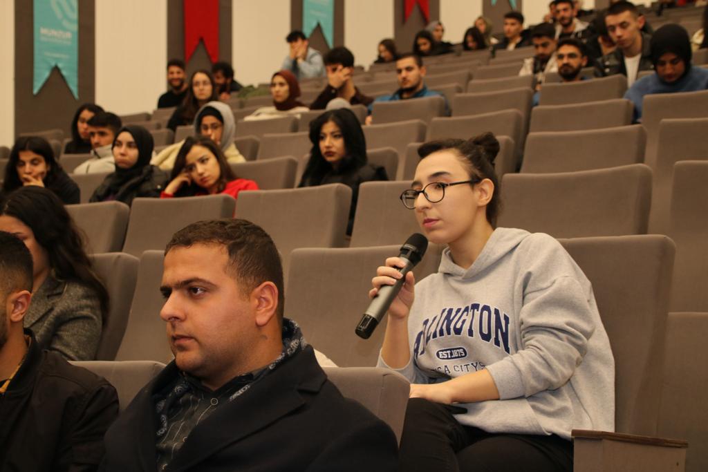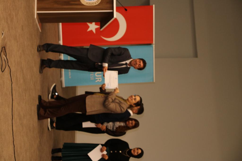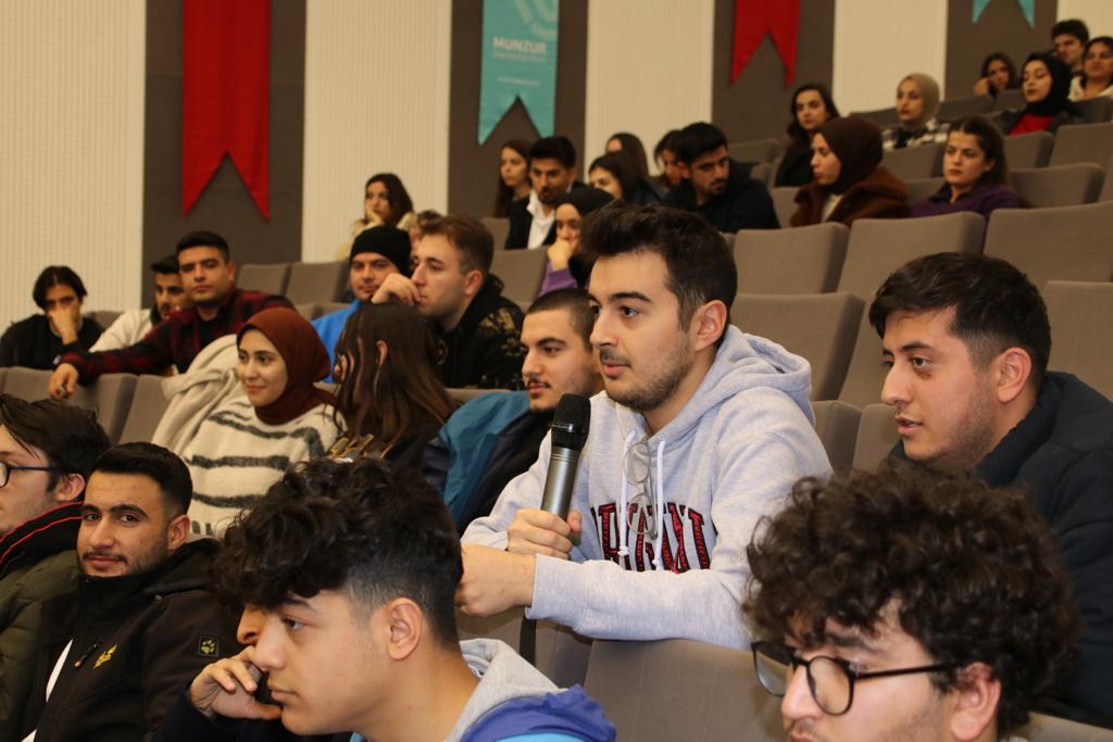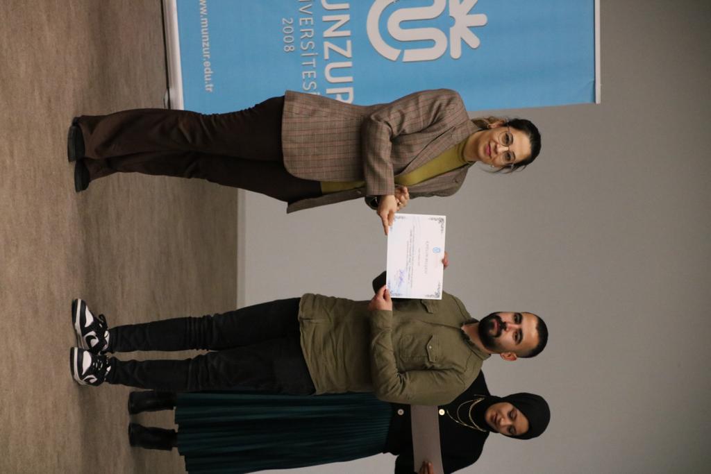 Akabinde 1. Öğrenci Çalıştayı Munzur Üniversite öğrencilerinin temsili konuşmaları başladı. 1. Öğrenci Çalıştay’ında Munzur Üniversite’si Fakültelerini Edebiyat Fakültesi’nden Esra KURUCU, Güzel Sanatlar Tasarım ve Mimarlık Fakültesi’nden Beyza KILIÇASLAN, İletişim Fakültesi’nden Ali Eren EMİR, İktisadi ve İdari Bilimler Fakültesi’nden Delil NESİN, Mühendislik Fakültesi’nden Medeni ABA, Sağlık Bilimleri Fakültesi’nden Mervan YALÇIN ve Spor Bilimleri Fakültesi’nden Ramazan Barış EKER öğrencileri birer konuşma yaparken, aynı şekilde Lisansüstü Eğitim Enstitüsü öğrencilerini temsilen Seçgin TEKİN, Munzur Üniversitesi’nin Meslek Yüksek Okul (MYO) öğrencilerini temsilen Elif DEMİR, Çemişgezek Meslek Yüksek Okulu (MYO) öğrencilerini temsilen Rüzgar Taha ER, Pertek Meslek Yüksek Okulu (MYO) öğrencilerini temsilen Mehmet KAYA birer konuşma gerçekleştirdiler. Öğrenciler konuşmalarında bünyesinde eğitim gördükleri fakülte ve bölümlerindeki sorunları sundular. Konuşmalarında iyileştirme taleplerini de dile getiren öğrenci temsilcileri özellikle ulaşım ve yurtlardaki eksikliklerinin ivedikle giderilmesini talep ettiler. Programın moderatörlüğünü Dr. Öğr. Üyesi Zülkif YALÇIN yaptı. Rektör Yardımcısı Prof. Dr. Nuran CIKCIKOĞLU YILDIRIM tarafından Öğrenci Çalıştay’ını düzenlenmesinde emek veren öğrenci temsilcilerine katılım belgesi verildi.
