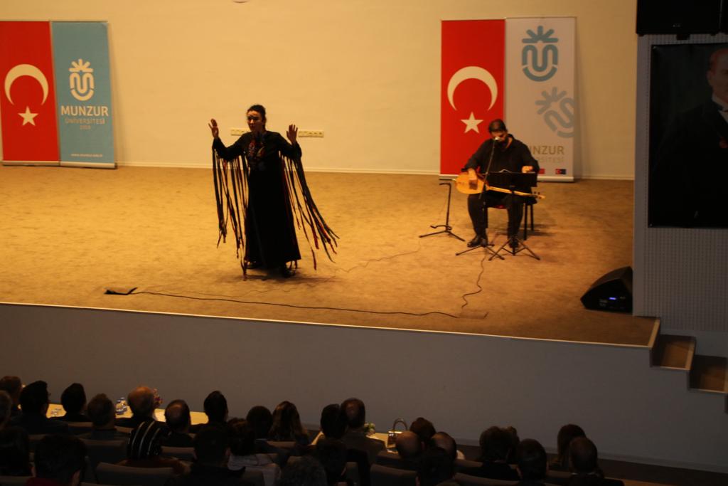 Türkiye Cumhuriyeti Kültür ve Turizm Bakanlığı tarafından desteklenen ve Türkiye’nin birçok şehrinde sahnelenen Nefes oyunu Tunceli’de seyircisiyle buluştu. Tunceli Valiliği ve Munzur Üniversitesi işbirliğinde Munzur Üniversitesi Kongre ve Kültür merkezinde Nefes tiyatro oyununu sanatçı Nazlı Çığa sahneledi ve sanatçı Sinan Kutlucan bağlamasıyla eşlik etti. Nefes tiyatro oyununa Tunceli Valisi Bülent TEKBIYIKOĞLU, Munzur Üniversitesi Rektörümüz Kenan PEKER, Munzur Üniversitesi akademisyenleri, idari personeli ve öğrenciler katıldı.