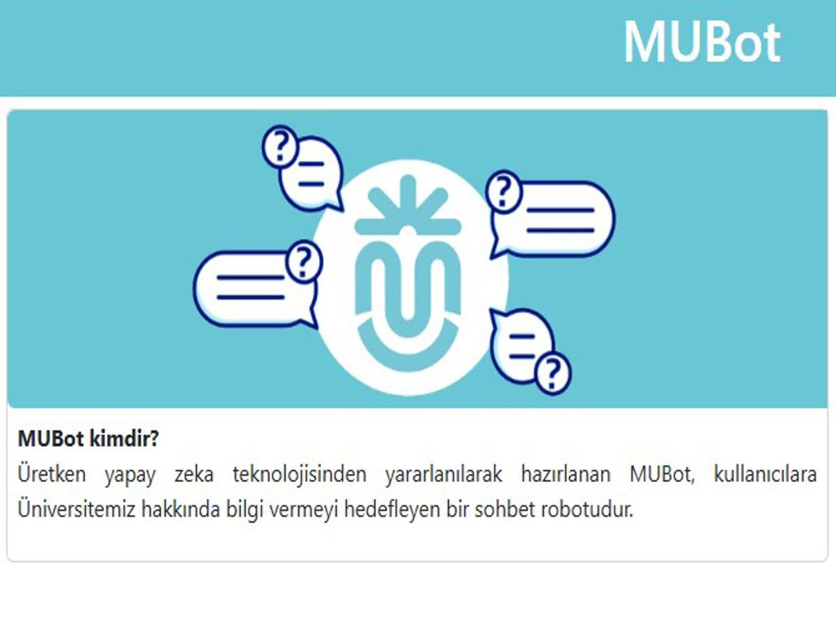 Munzur Üniversitesi Akademisyenleri; Dr. Öğr. Üyesi Muhammed Fatih Cevher ve çalışma arkadaşları tarafından GPMUB024-02 numaralı BAP desteği kapsamında geliştirilen yapay zekâ destekli sanal asistan prototipi MUbot (Munzur Bot), artık web sitemizin sağ alt köşesinde öğrenci ve akademisyenlerimizin kullanımına sunulmuştur. MUbot, kullanıcıların sorularına hızlı ve etkili çözümler sunmak, bilgiye erişimi kolaylaştırmak ve üniversite içi iletişimi güçlendirmek amacıyla tasarlanmıştır. Bu yenilikçi asistan sayesinde öğrencilerimiz ve akademisyenlerimiz, üniversite ile ilgili bilgi taleplerini daha hızlı ve kolay bir şekilde karşılayarak dijital deneyimlerini daha verimli hale gelecektir. Geliştirme süreci devam eden MUbot prototipi, üniversitemiz web sitesindeki bilgilerle sınırlı olarak, kullanıcıların yönlendirdiği sorularla kendini geliştirmeye devam etmekte olup yanıt verebilme potansiyeli genişleyecektir.