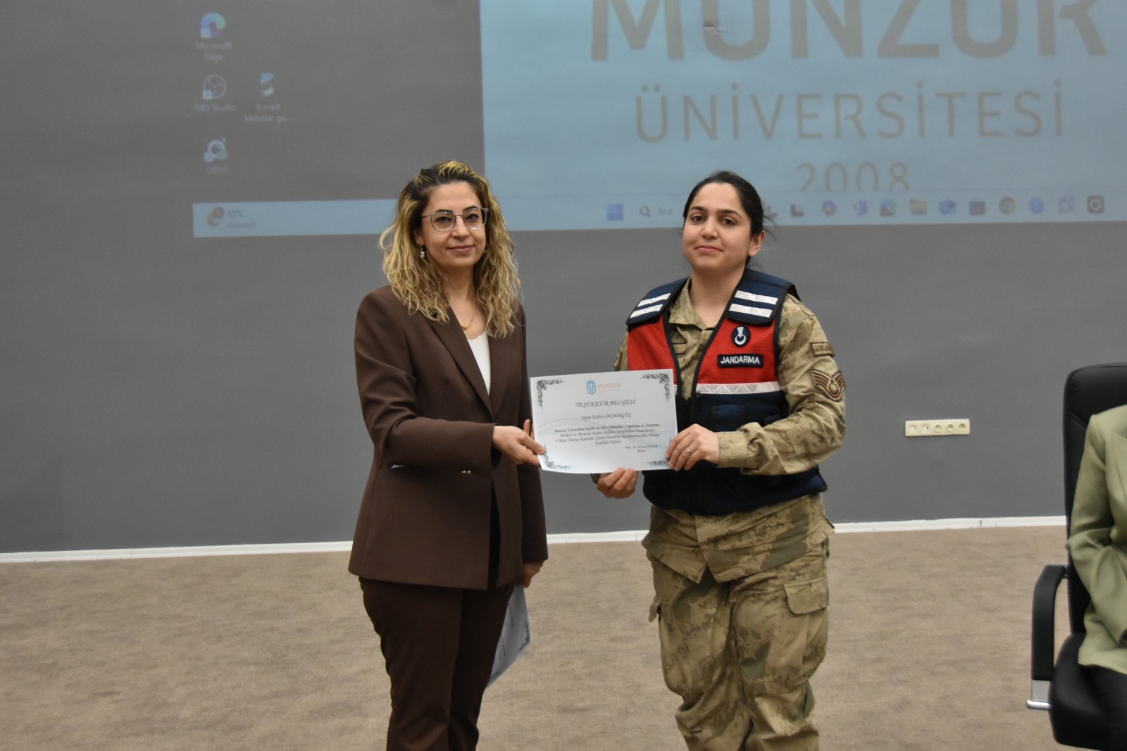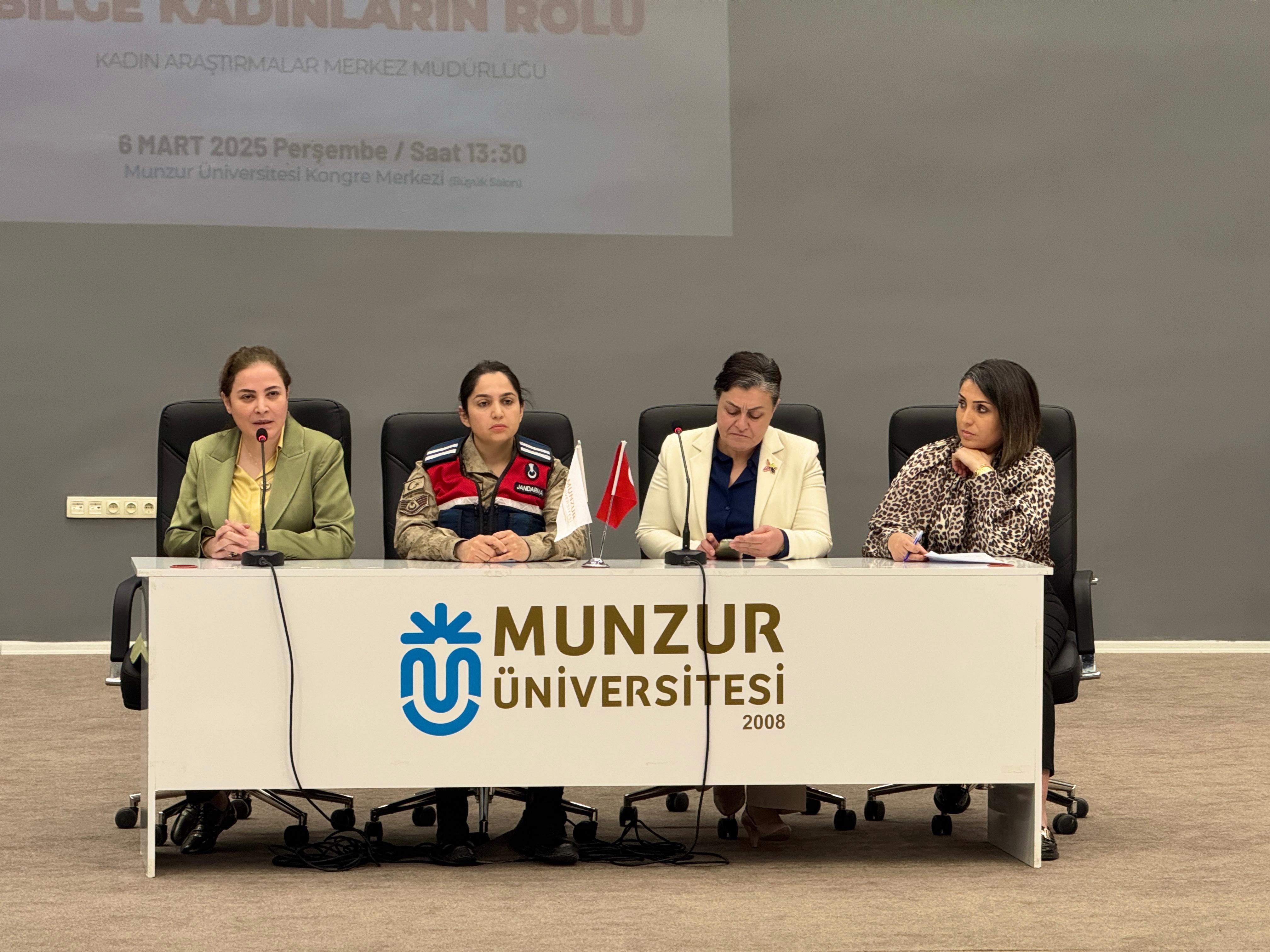 Akabinde gerçekleşen panelde Psikolog Dr. Ayfer HATİPOĞLU; ‘’Toplumda Kadın’’, Jandarma Astsubay Kıdemli Üst Çavuş Kübra DEMİRGÜÇ; ‘’Güvenlikte Kadın’’, Siyasetçi Melike GÖKALP; ‘’Siyasette Kadın’’ ve Girişimci Sevcan ARSLAN; ‘’Ekonomide Kadın’’ konularında birer konuşma yaptılar. Etkinliğin program sunumu Seher KONT ERDOĞAN tarafından yapıldı. Uluslararası 8 Mart Dünya Kadınlar günü programı; Munzur Üniversitesi Rektör Yardımcısı Prof. Dr. Nuran CIKCIKOĞLU YILDIRIM’ın panelist konuşmacılara sunduğu teşekkür belgesi ile sona erdi.