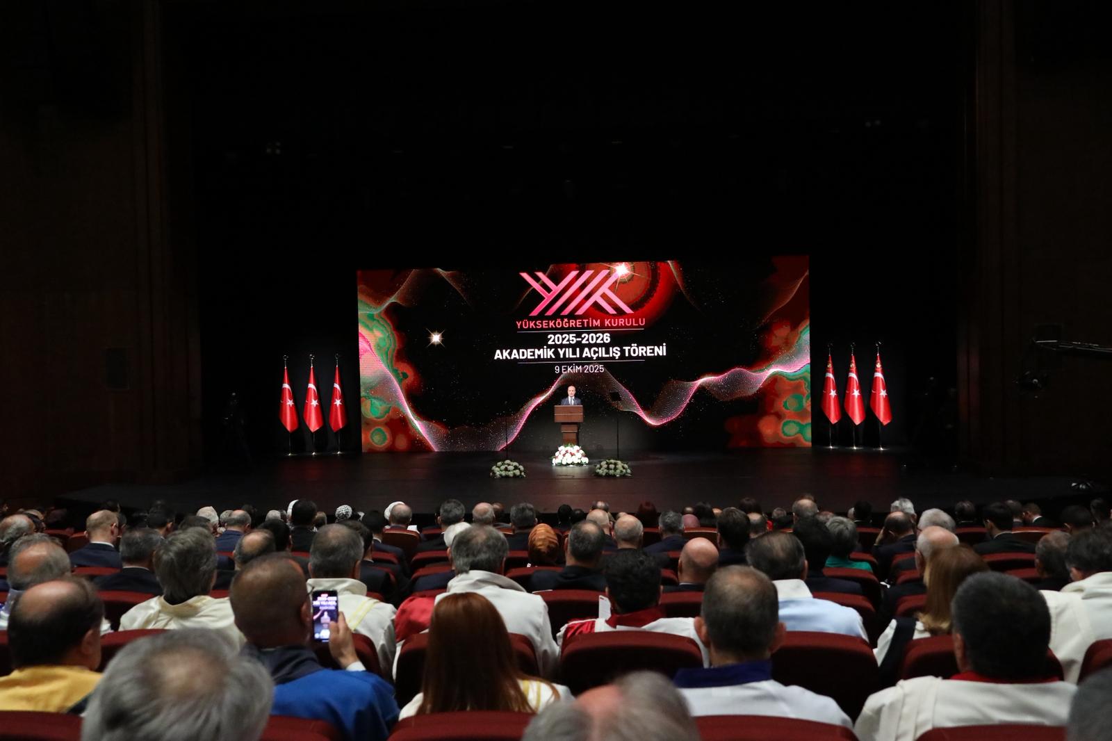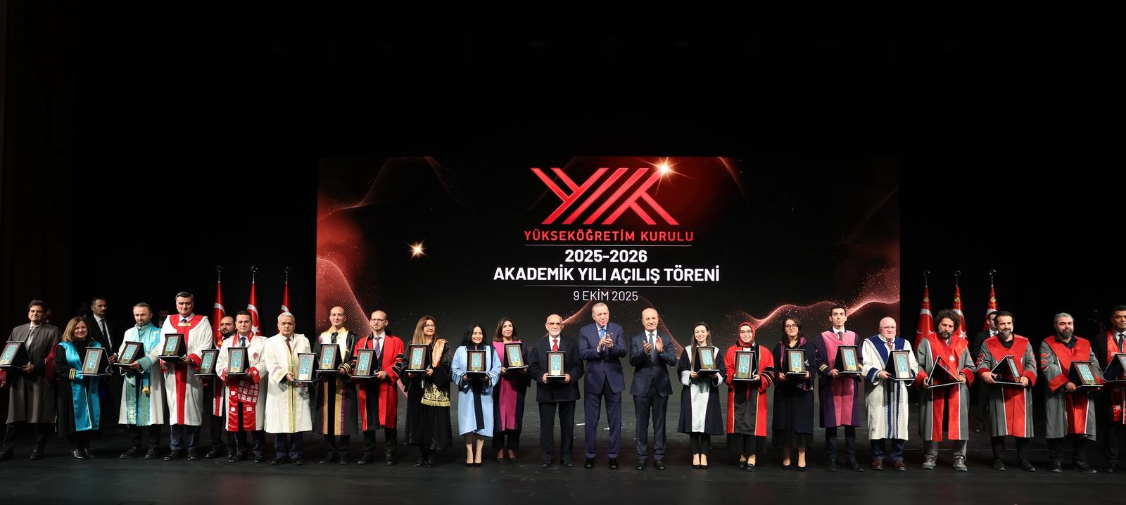 Sayın Cumhurbaşkanımızın açılışta ortaya koydukları Türk Yükseköğretim Vizyonu; kültürlerin aktarılması, toplumsal gelişmenin kültürel temelli çeşitlilik içeren bilgi zenginliği, bilim, teknoloji ve yenilik araçları ile daha iyiye, doğruya ve güzele dönüştürülmesine yönelik açıklamalardı. Cumhurbaşkanımız Sayın Recep Tayyip ERDOĞAN; Türkiye’nin köklü bir medeniyetin ve zengin bir ilmi mirasın varisi olduğunu “İlmi, yitik malı gören ecdadımız, medeniyet bahçemizi ilim çiçekleriyle süsledi” sözleriyle açıkladı. Kurulan eğitim kurumlarının geniş coğrafyalarda etkili olduğunu ve Avrupa’ya örnek teşkil ettiğini belirtti. Sayın Cumhurbaşkanımız, kültürel kazanımlar ile üretilen bilgi, bilim, teknoloji ve inovasyonlar sayesinde Türkiye Yüzyılı'nda bilge insanlarla bilim ihraç eden bir ülke olma dönemine girdiğimizi belirtti. Yapılan reformların yükseköğretimi daha verimli ve uluslararası standartlara uygun hale getireceğini de açıkladı. Gazze’de yaşanan insani dramın sona erdirilmesi için yürütülen kararlı duruşunu da dile getiren Cumhurbaşkanımız; sevgi, barış ve adalet temelli, insanı merkeze alan bir yapıya dikkat çekti. Ardından Yüksek Öğretim Kurulu’nun 2025 Üstün Başarı Ödülleri verildi.