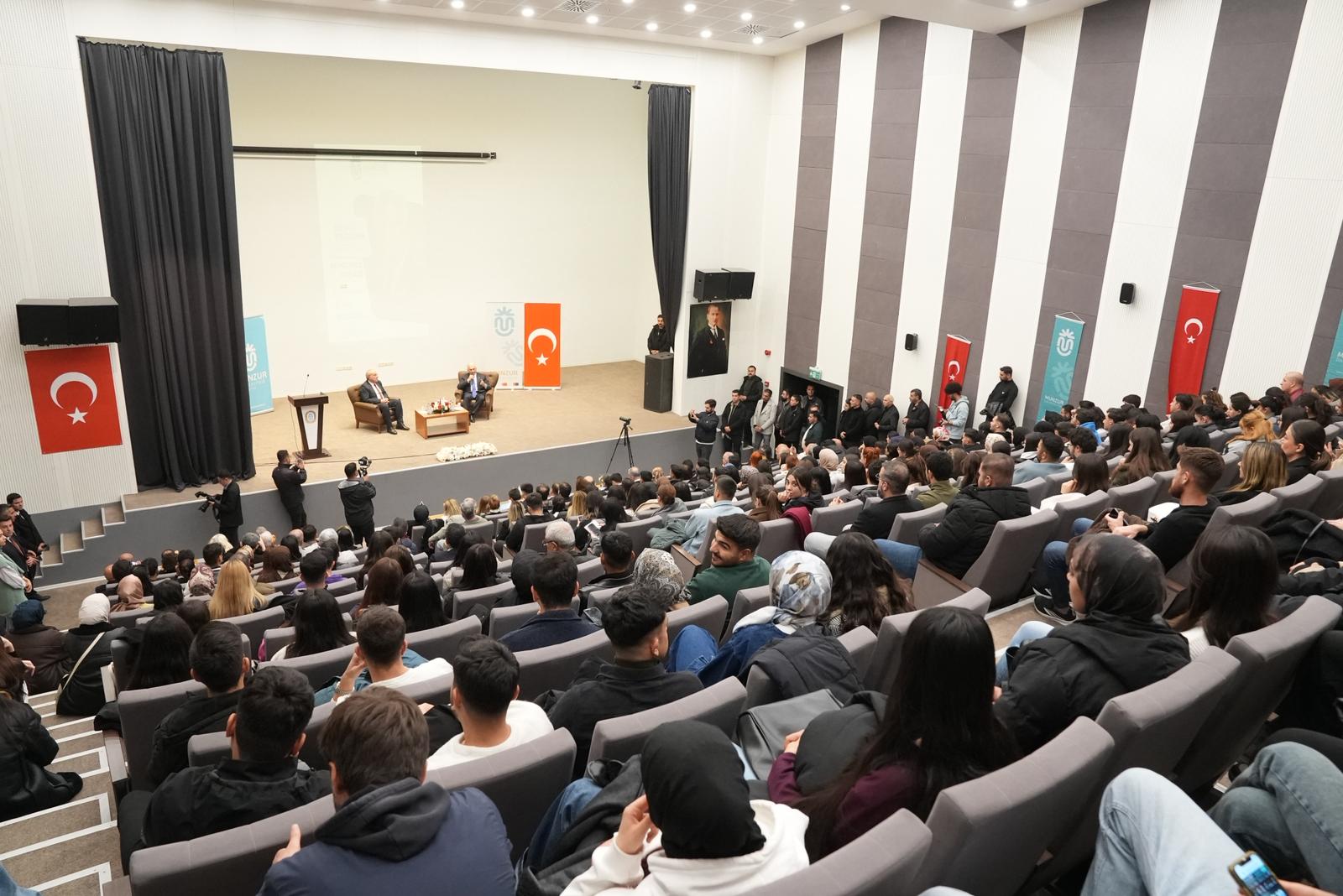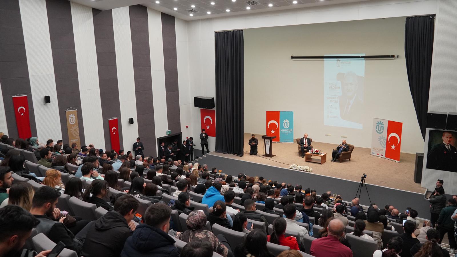 Munzur Üniversitesi, Türkiye Cumhuriyeti’nin son Başbakanı ve Türk Devletleri Teşkilatı Aksakallılar Heyeti Başkanı Binali YILDIRIM’ı ağırladı. Kongre ve Kültür Merkezi’nde düzenlenen “Gençlerle Söyleşi” programında Sayın Binali YILDIRIM, öğrencilerle bir araya gelerek tecrübelerini, ülke gündemine ilişkin değerlendirmelerini ve gençlere yönelik tavsiyelerini aktardı. Aynı zamanda Sayın Binali YILDIRIM, öğrencilerimizin sorularını da yanıtlayarak değerli tecrübelerini ve görüşlerini de paylaştı.