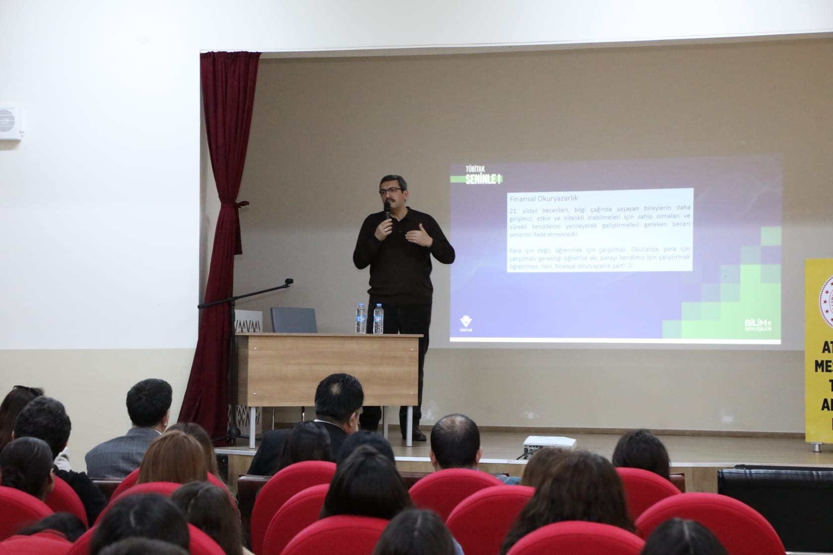 Munzur Üniversitesi Sağlık Bilimleri Fakültesi Acil Yardım ve Afet Yönetimi (AYAY) Bölümü Öğretim Üyesi Prof. Dr. Nevzat TETİK tarafından 1. Nisan 2026 tarihinde Tunceli Atatürk Mesleki ve Teknik Anadolu Lisesi'nde bir söyleşi gerçekleştirildi. ''TÜBİTAK Bilim Söyleşileri'' kapsamında yapılan söyleşinin tematik alanı ise; “Finansal Okuryazarlık; Planlama- Bütçe- Tasarruf- Birikim- Yatırım, konuları oldu.